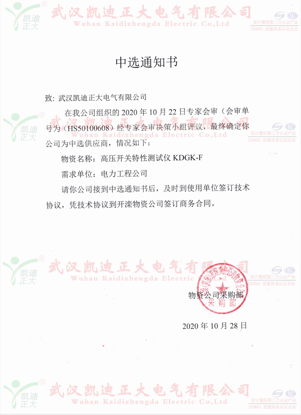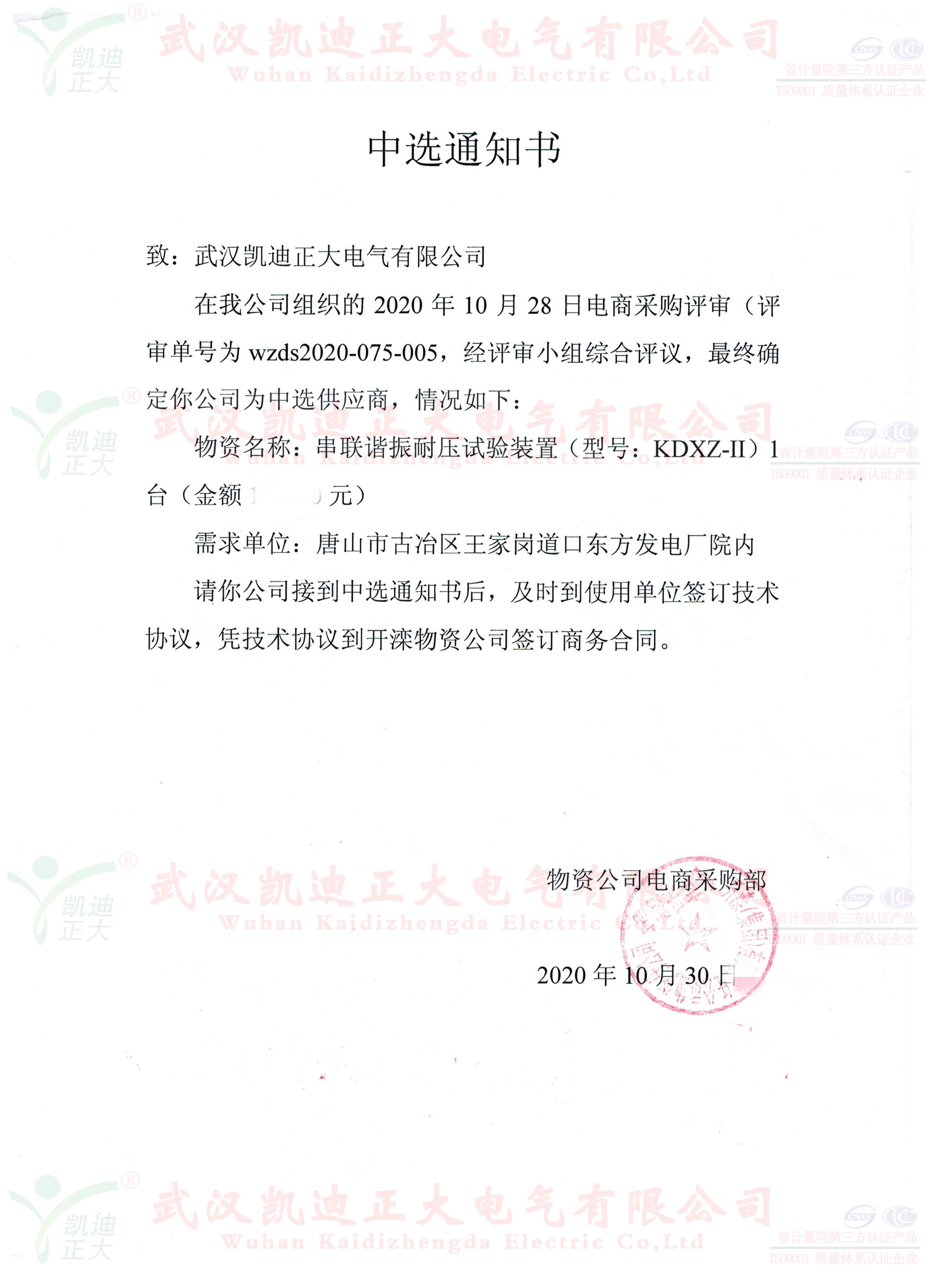 誰無暴風(fēng)勁雨時,守得云開見月明。這個11月可以說是灰蒙蒙的,經(jīng)歷了洗刷.......。我司與國內(nèi)大型鋼鐵企業(yè)的合作,各大煤業(yè)集團均獲得訂單。這次是開灤集團的東方電廠公開詢價采購KDXZ-II串聯(lián)諧振耐壓試驗裝置、KDGK-F高壓開關(guān)機械特性測試儀等設(shè)備。在與多家電氣設(shè)備制造商的競標(biāo)中,我司以優(yōu)質(zhì)口碑、多項專利技術(shù)、精準(zhǔn)售后等高分獲得評標(biāo)組的認(rèn)可。獲得中選供應(yīng)商。