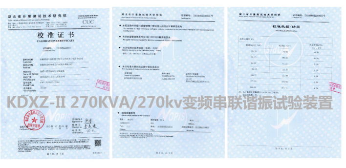 凱迪正大KDXZ-II 270KVA變頻串聯(lián)諧振試驗(yàn)裝置取得專業(yè)校準(zhǔn)證書
