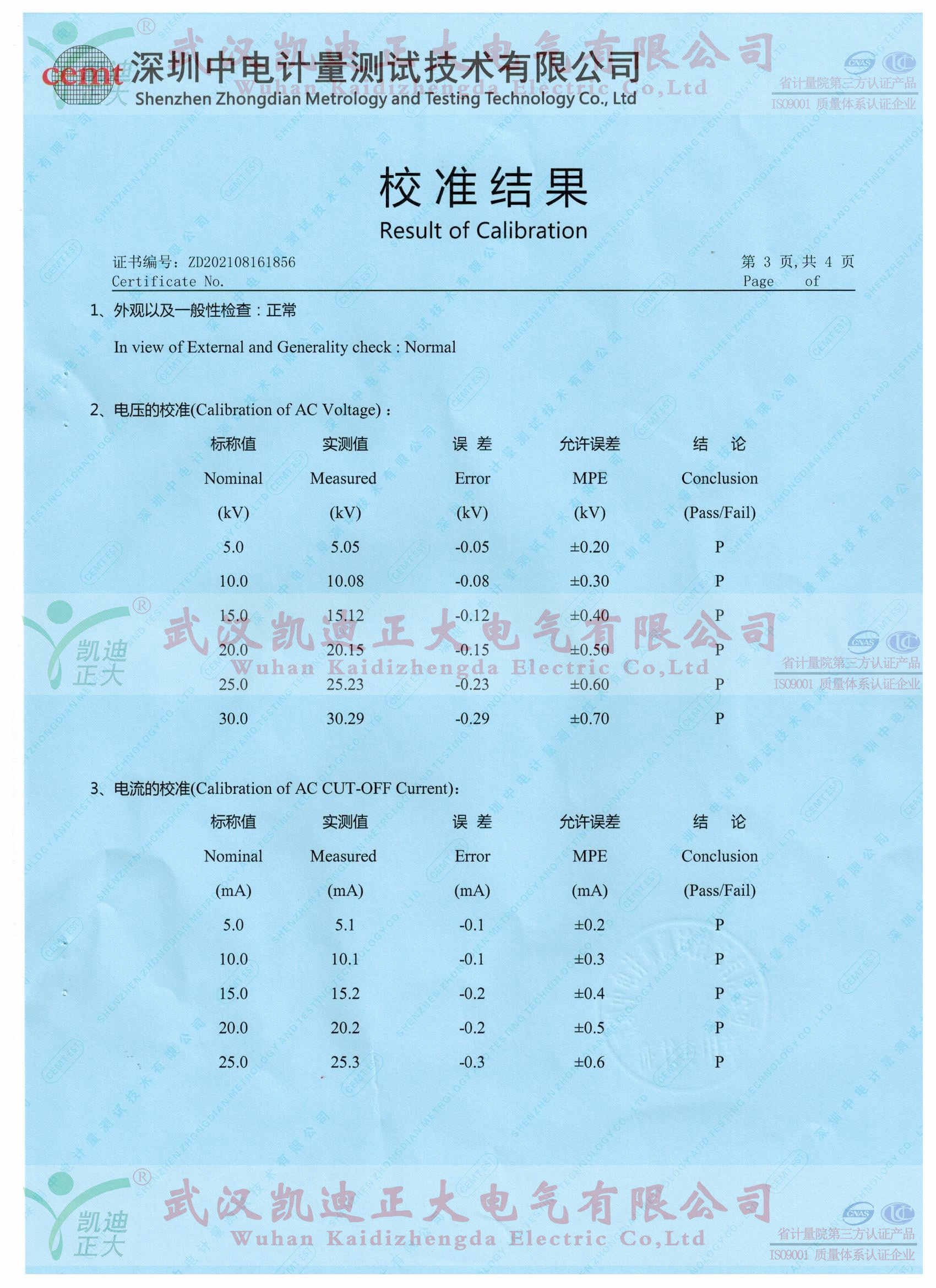 5、隨后的直流電壓試驗(yàn):疊加沖擊電壓試驗(yàn)后,試驗(yàn)對象應(yīng)在不加熱的情況下經(jīng)受負(fù)極性直流電壓試驗(yàn),試驗(yàn)電壓為Ur,持續(xù)時(shí)間為2h。該試驗(yàn)開始前允許有一段停頓時(shí)間。